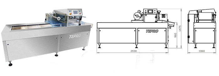 Машина требует присутствия оператора на 1 стадии, при заполнении лотков продуктом, для замены использованного рулона с пленкой, периодического удаления намотанного ажура пленки, а также для контроля правильности работы машины. Во время укладки лотков, оператор может находится с любой стороны транспортера лотков.