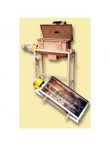 Ручная загрузка сырья из мешков осуществляется после открытия крышки мешалки. После загрузки сырья и закрытия крышки начинается процесс перемешивания.